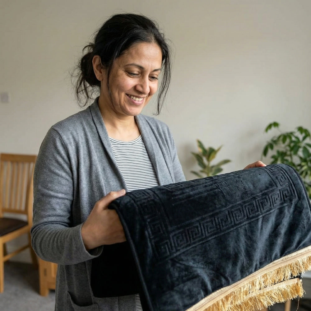 "My mum is 57 and she'd started praying her sunnah sitting down. She said it was fine but I could tell it bothered her — she never used to do that. I ordered this for her without saying anything. She called me that evening and said she prayed Isha with all her sunnah on the ground. She sounded so happy :)"